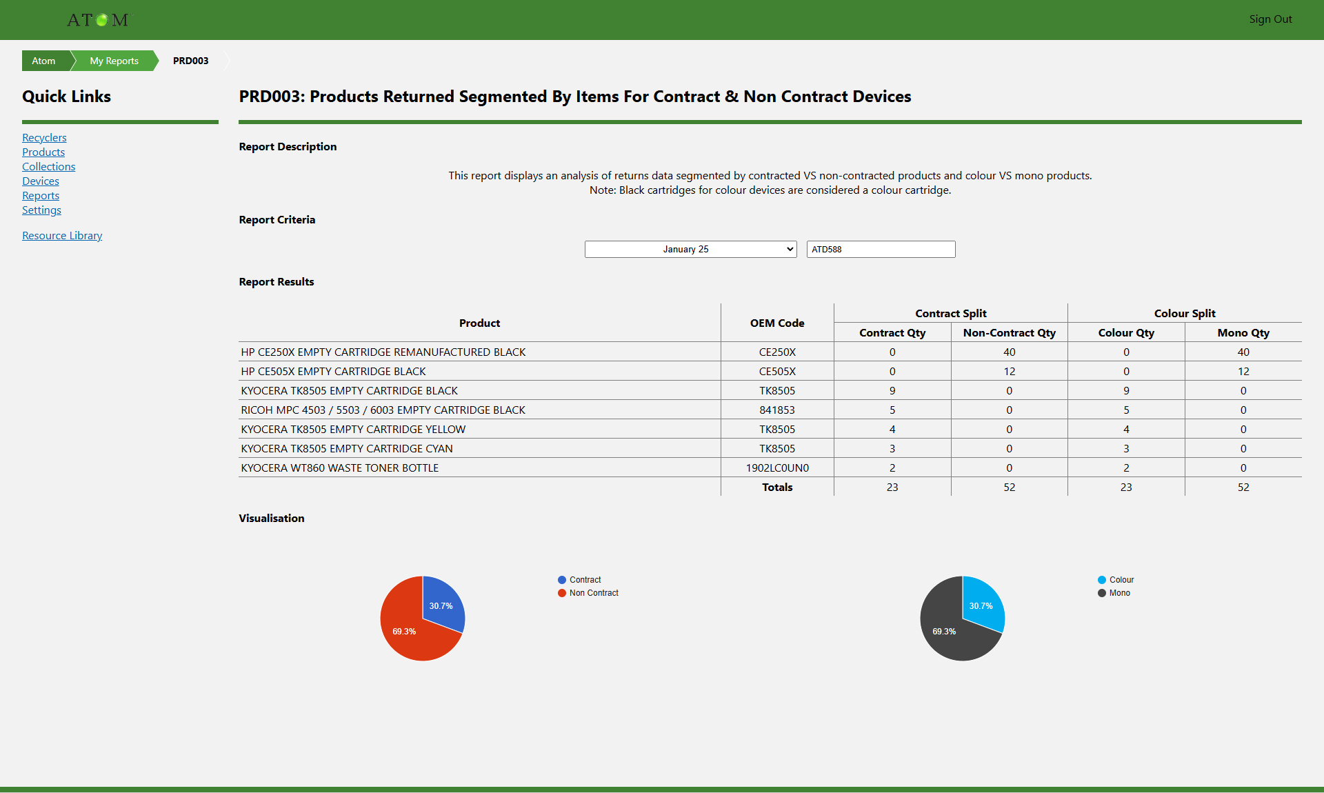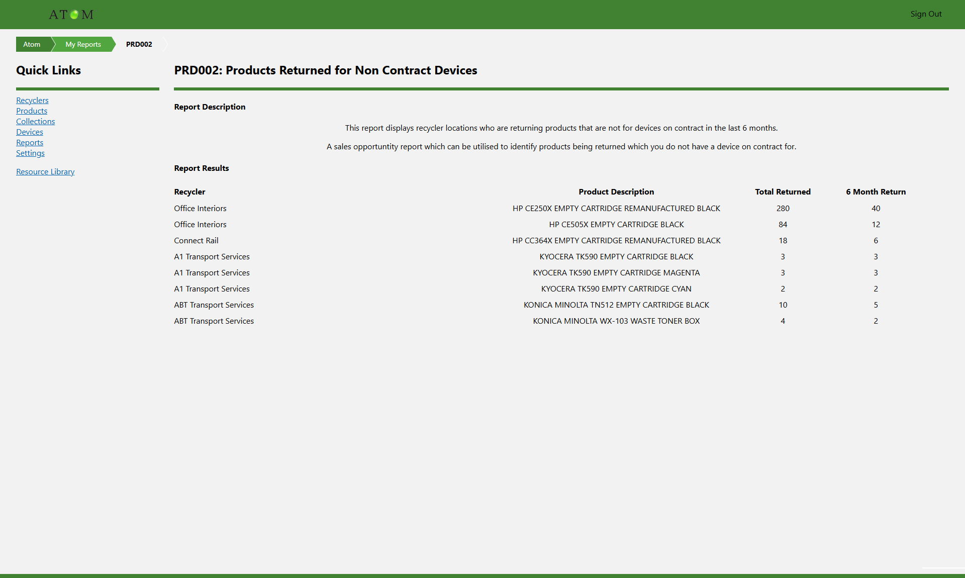 ATOM has the power to provide you with real-time data into your customers’ waste streams and ALL devices at any given location, which can help you to identify hidden sales opportunities & enable you to provide your clients with ALL of the cartridges that they use.
