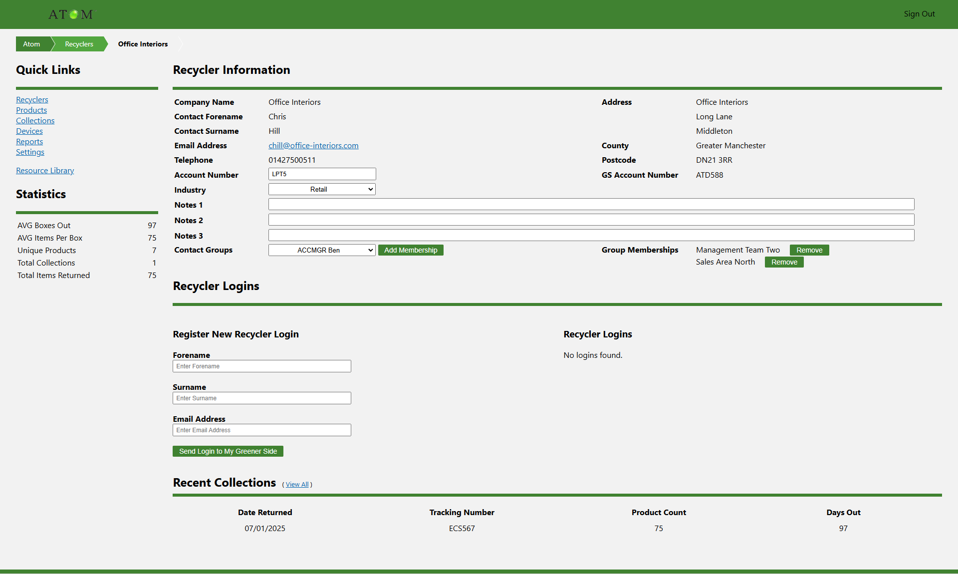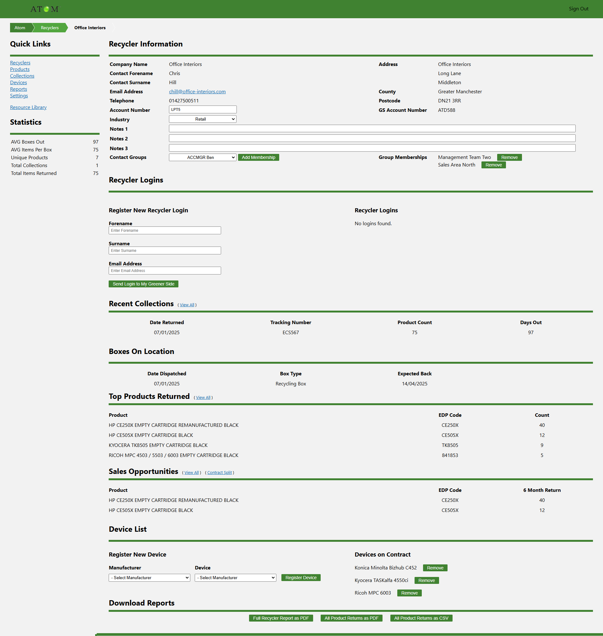 ATOM can also provide you with the resources to both create and manage your customers' profiles, download reports, Complete Waste Audits and track returned Waste Transfer Notes, Consignment Notes and proof of Data Erasure.